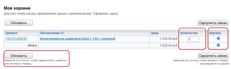Проверьте ее содержимое. На данном этапе можно изменить количество товара в корзине или удалить то, что Вам не нужно. После того, как внесены все необходимые изменения, необходимо нажать кнопку «Обновить».
