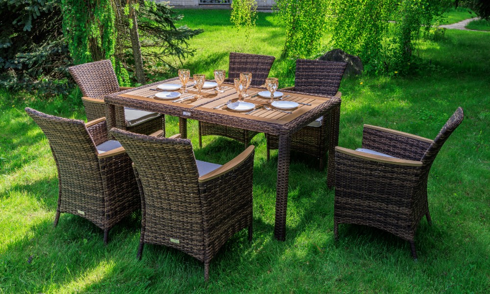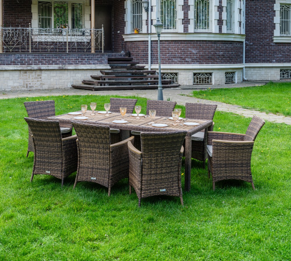 Материал комплекта - искусственный ротанг (ручного плетения)