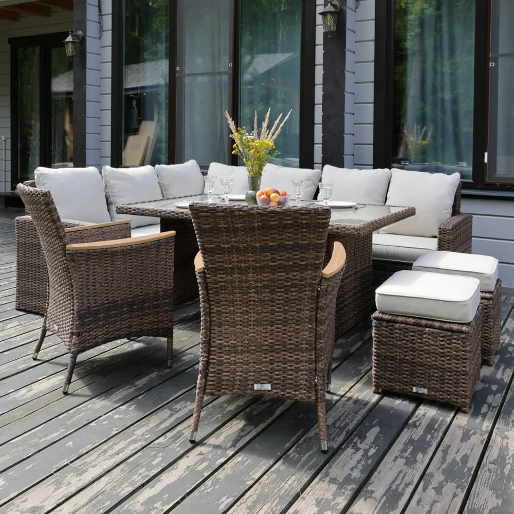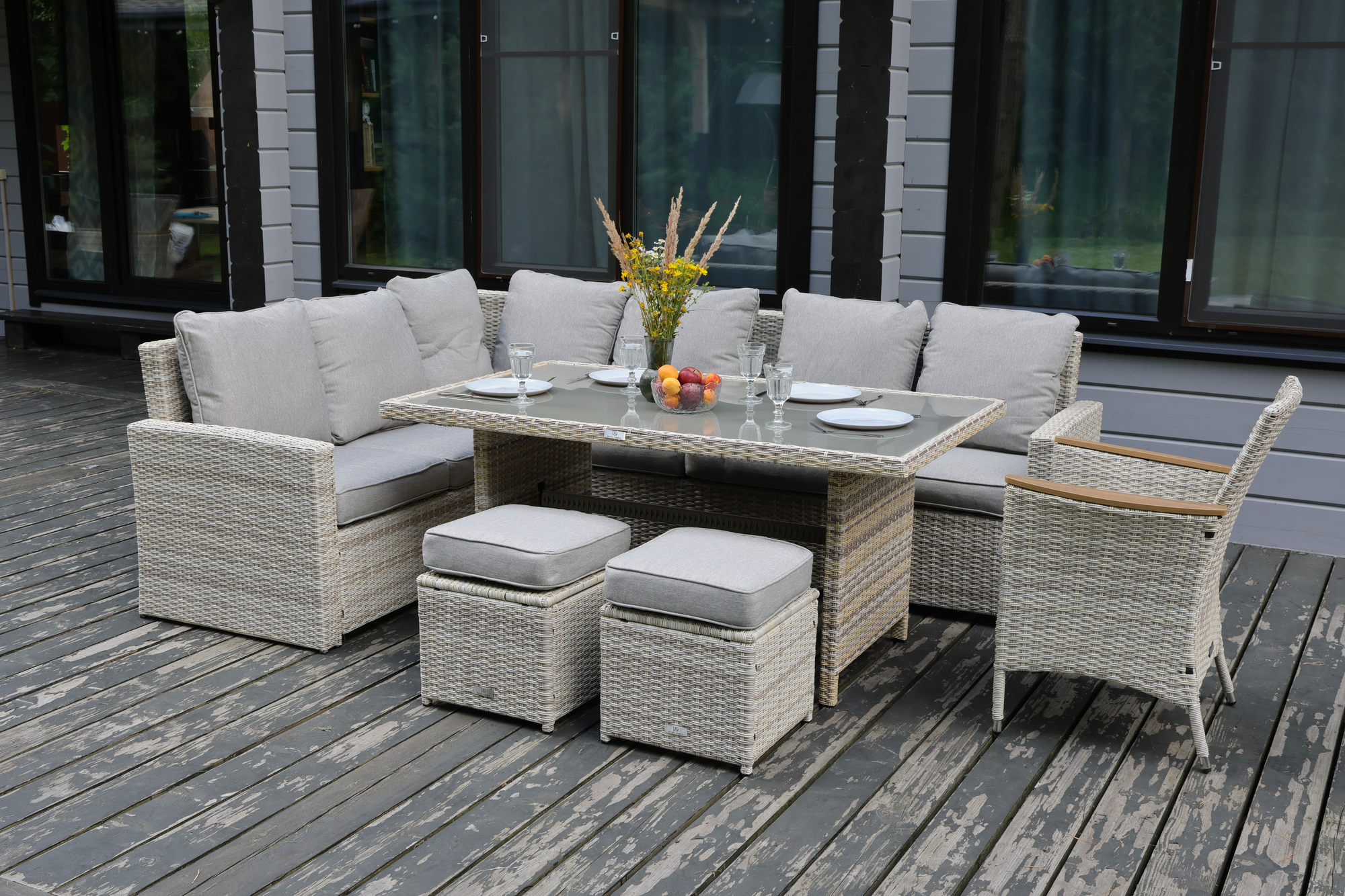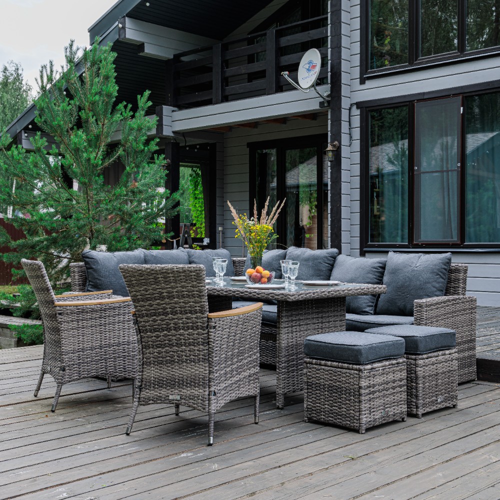 Материал комплекта - искусственный ротанг (ручного плетения)