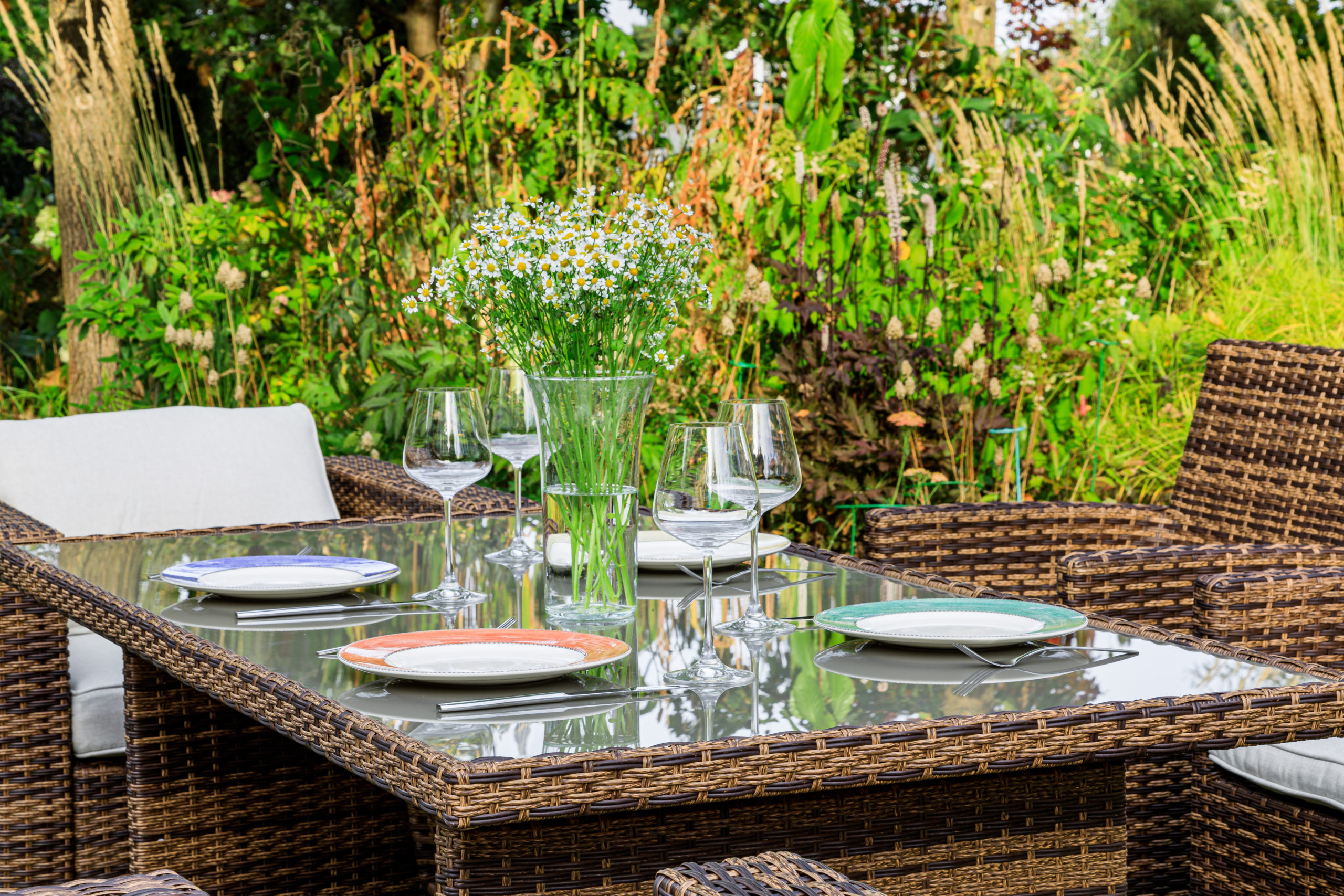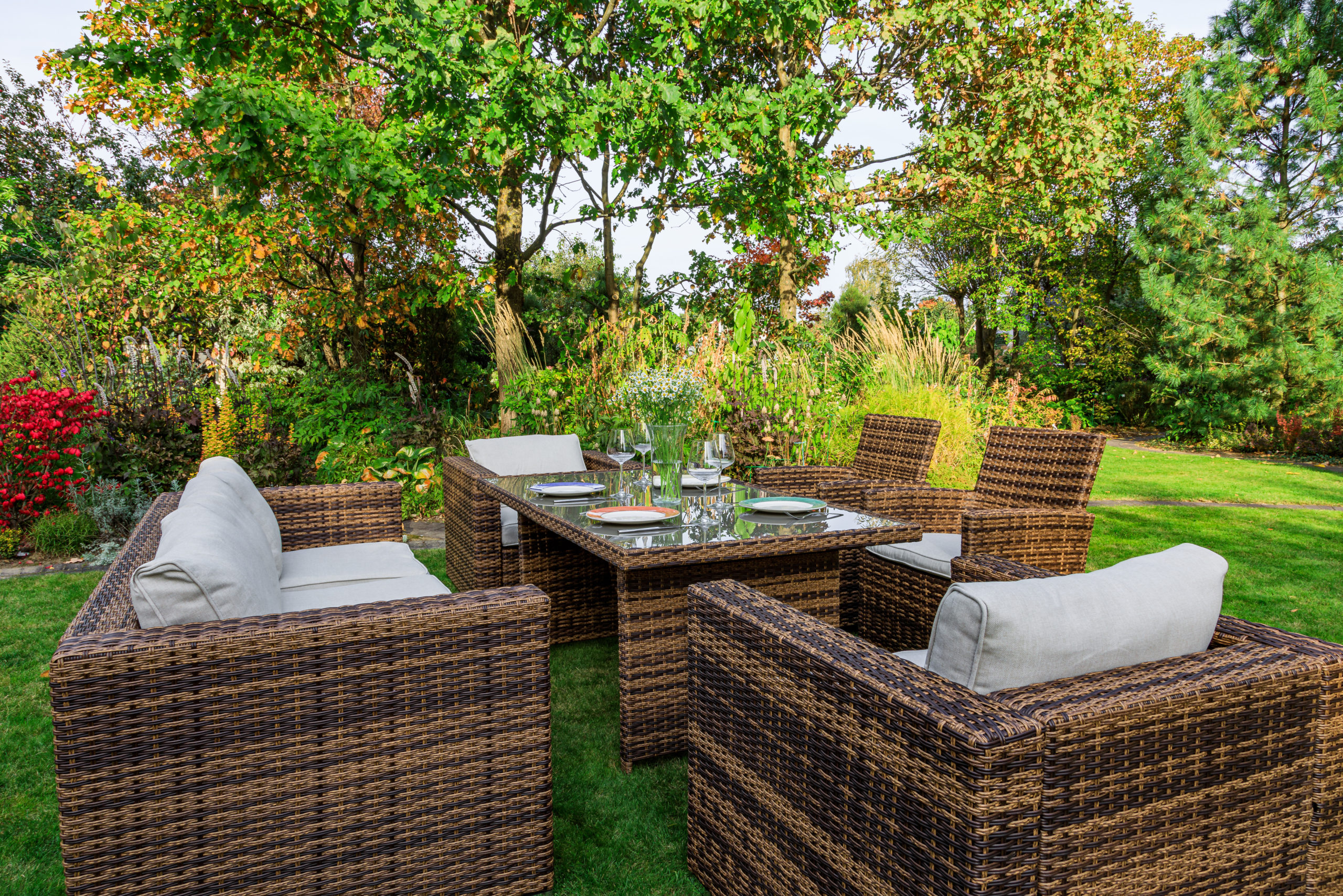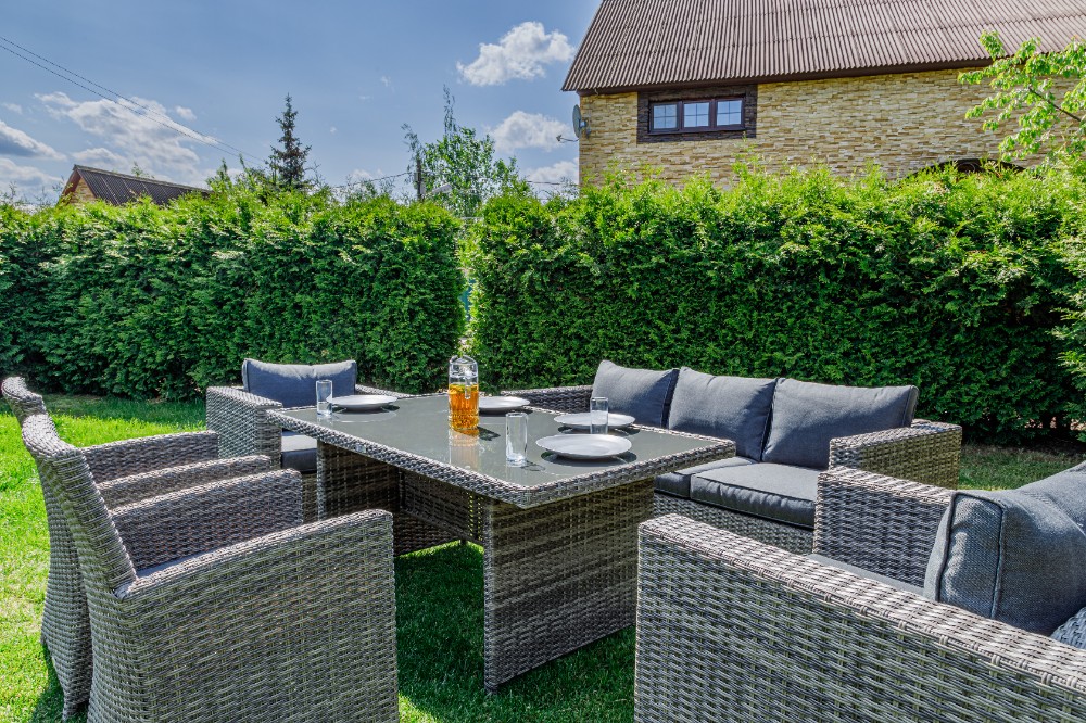 Материал комплекта - искусственный ротанг (ручного плетения)
