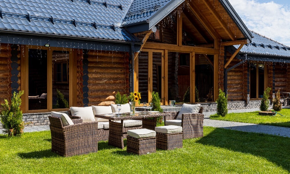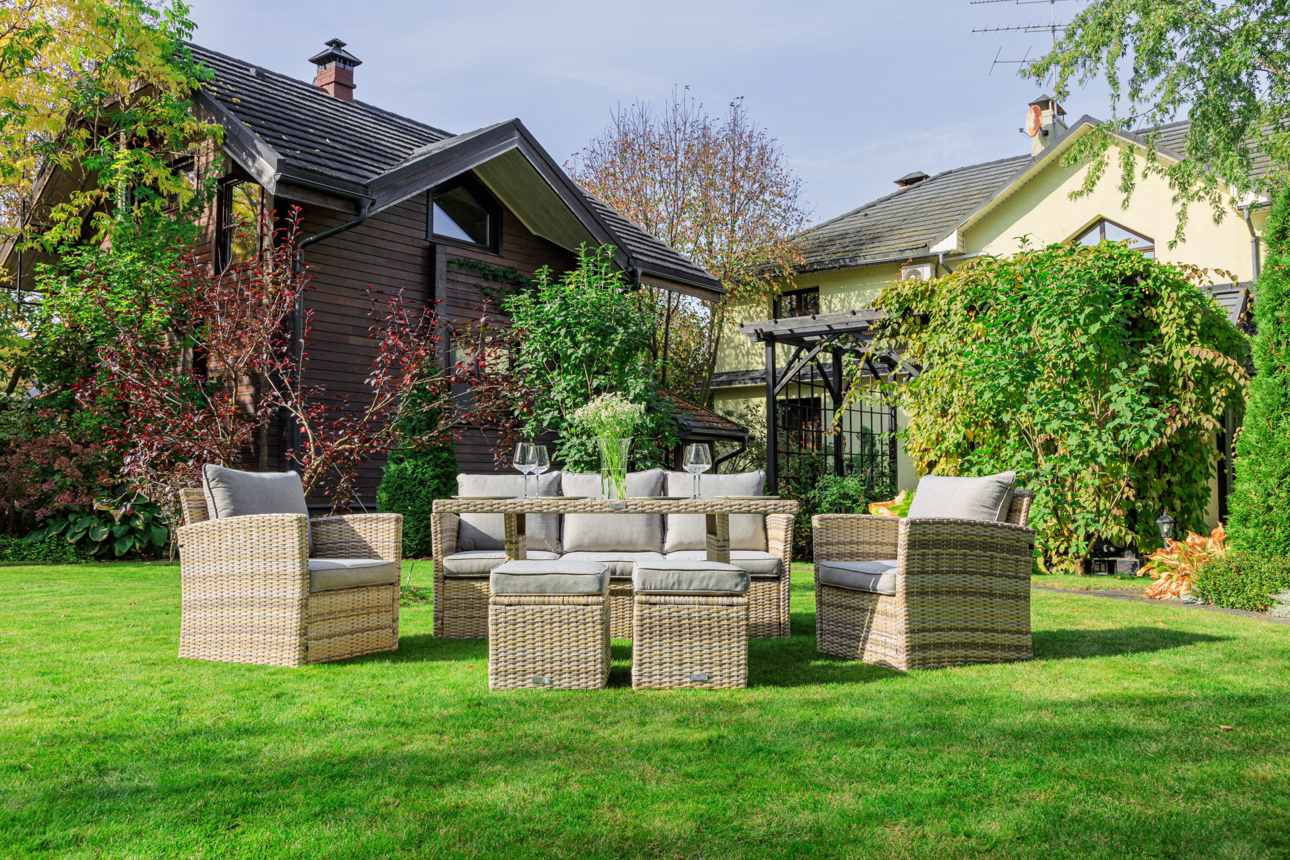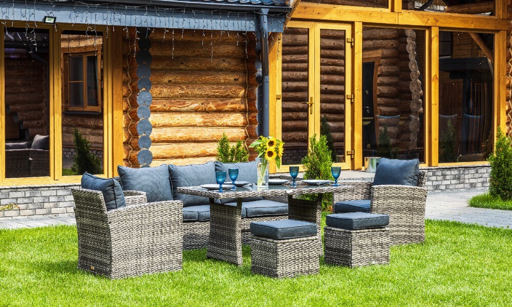 Материал комплекта - искусственный ротанг (ручного плетения)